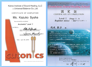 この認定者は、増川いづみが代表を務めるサウンドヒーリング教育協会からの初級アドバイザーの認定と、アキュトニックスのブランド名で有名な世界トップレベルのチューニングフォークの教育プロプラムを持つアキュトニックス統合医学研究所からレベルⅠの認定を取得したリストです。