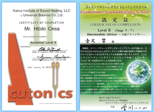 この認定者は、増川いづみが代表を務めるサウンドヒーリング教育協会からの中級アドバイザーの認定と、アキュトニックスのブランド名で有名な世界トップレベルのチューニングフォークの教育プロプラムを持つアキュトニックス統合医学研究所からレベルⅡの認定を取得したリストです。