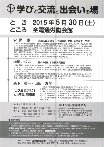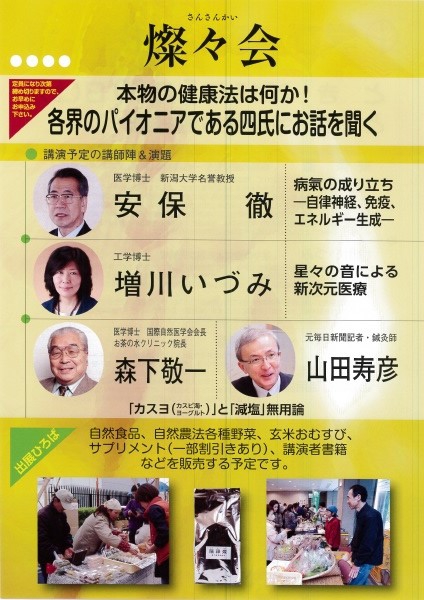 国際自然医学主催の〈燦々会〉にて「増川いづみ」が講演を致しますので、ご案内を申し上げます。